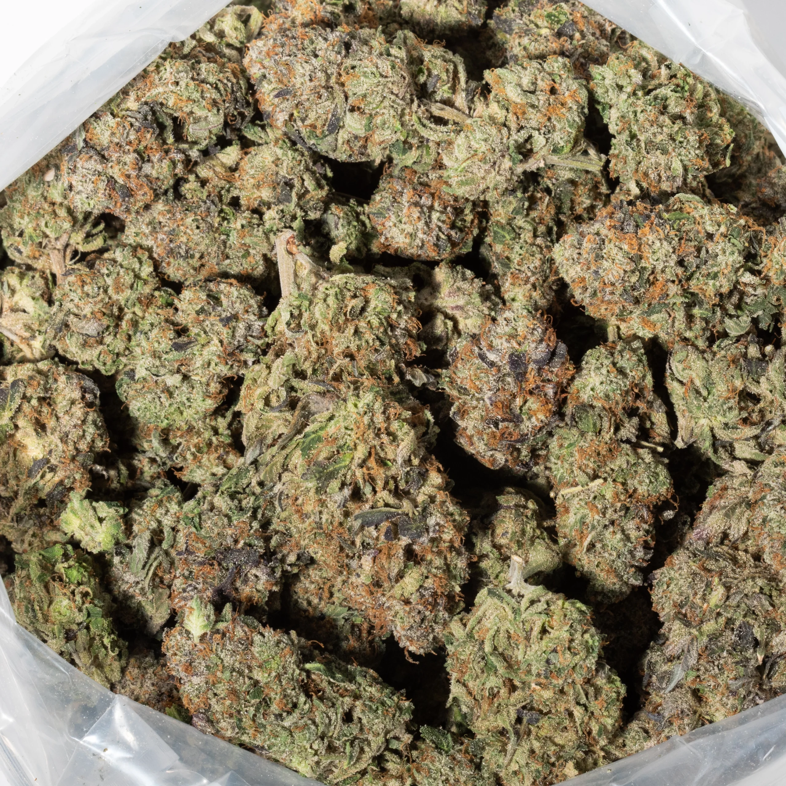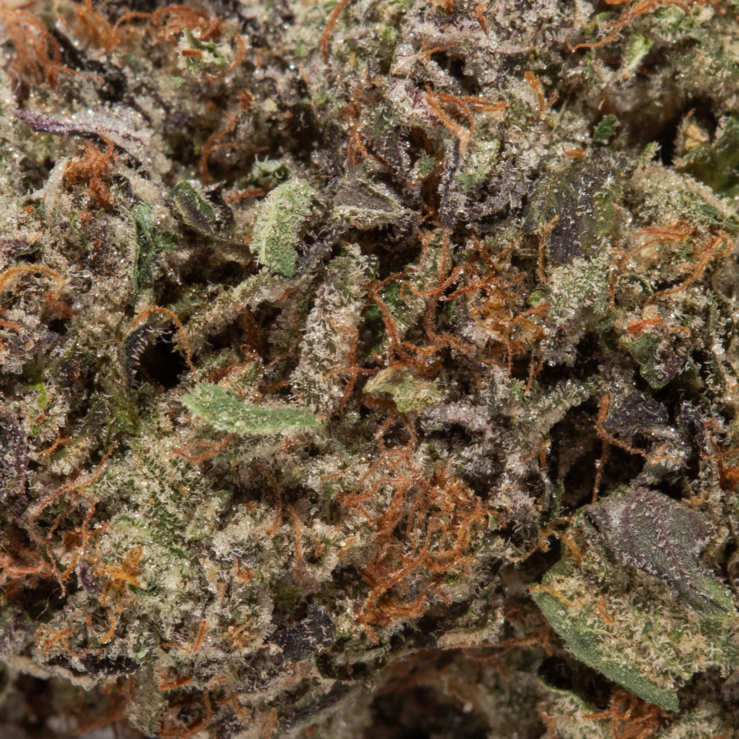 Trichomes: Extremely thick coating of frosty, milky-white trichomes giving a sugary, resin-soaked look.