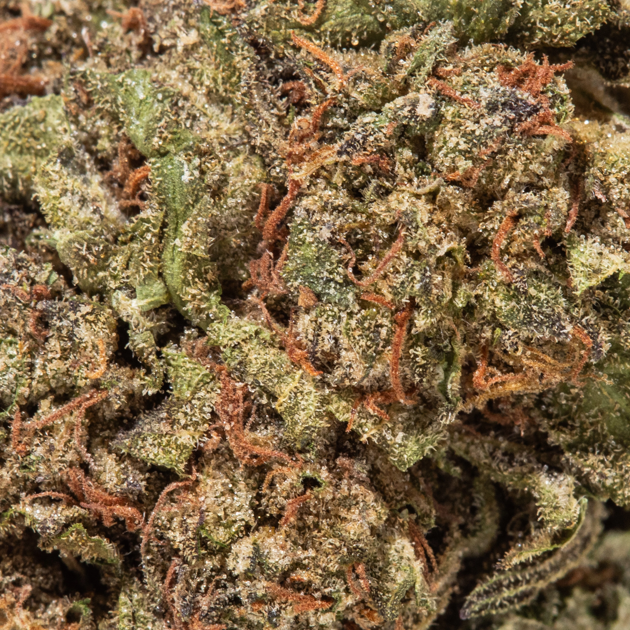- Structure: Buds are typically medium-sized, semi-dense, and coated with a fair amount of milky-white trichomes, giving them a frosted look.